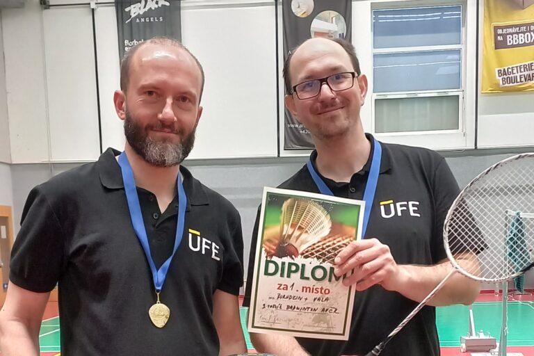 Milan Vala a Andrei Borodkin z ÚFE AV ČR vybojovali 1. místo v mužské čtyřhře na badmintonovém AKAturnaji Akademie věd ČR.