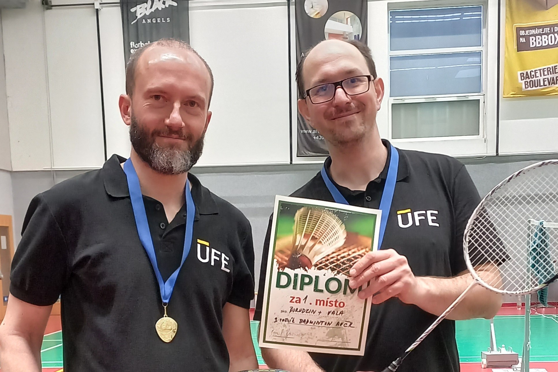 Milan Vala and Andrei Borodkin from the ÚFE won first place in the men’s doubles at the Czech Academy of Sciences’ AKA Badminton Tournament.