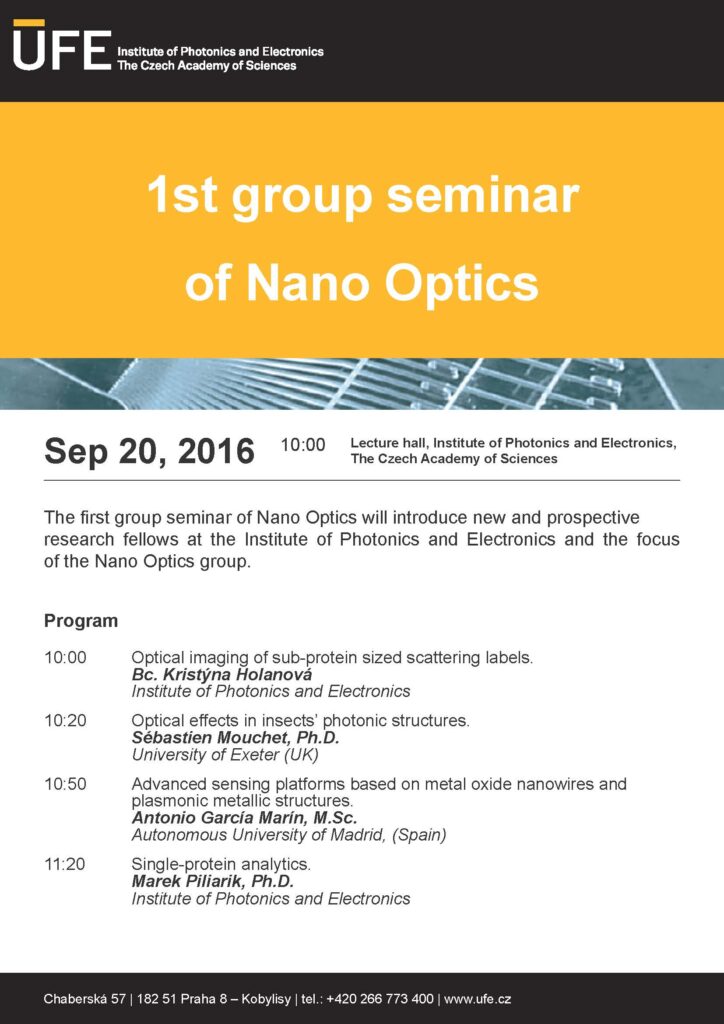 The first group seminar of Nano Optics will introduce new and prospective postdoctoral fellows and students at the Institute of Photonics and Electronics as well as the research focus of the Nano Optics group.