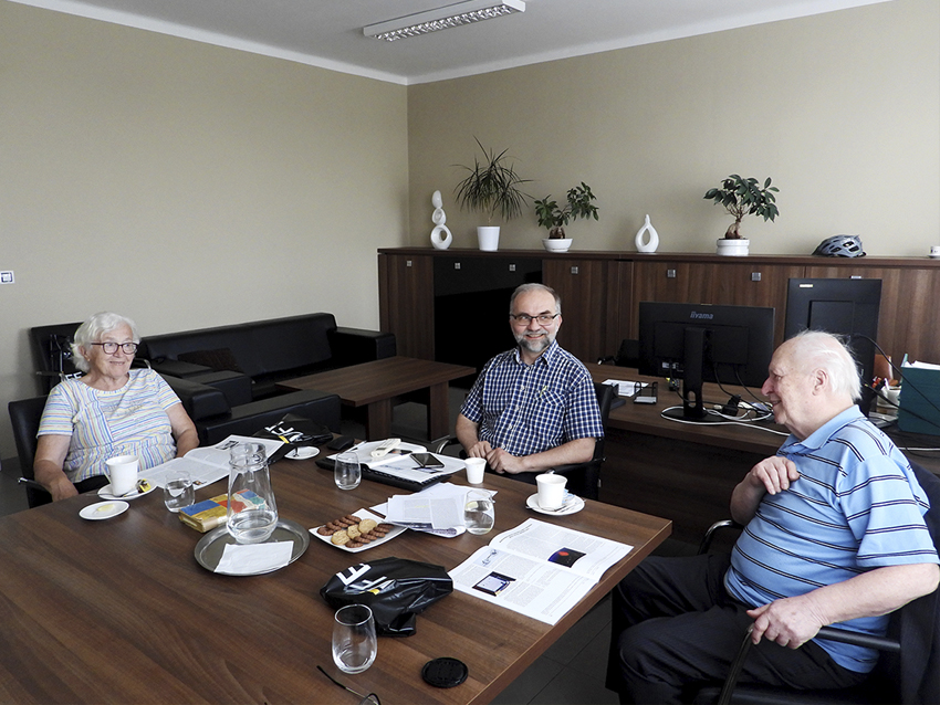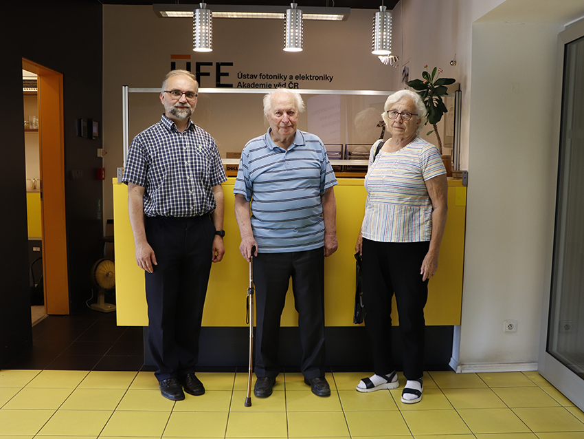 The actor of this famous event, Jan Blabla, visited the ÚFE on June 19. They reminisced about the pioneering time of Czechoslovak lasers with Prof. Miroslava Vrbová, with whom a little later, in 1966, they carried out the first Czechoslovak free-space laser communication. It was a connection between the tower of our institute and the building of the Research Institute of Communication Technology (VÚST) in Prague – Lhotka.