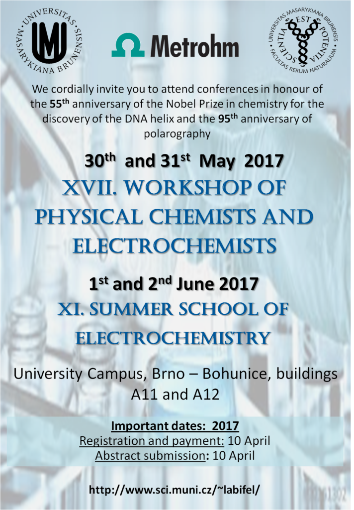 The 17th Workshop of Physical Chemists and Electrochemists-WPCHE and 11th year of the Summer School of Electrochemistry-SSE) was held from May 30 to June 2, 2017 at the Masaryk University.