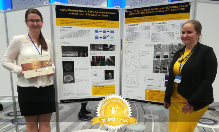Poster "Highly Ordered Arrays of ZnO Nanorods prepared with the help of Focused Ion Beam", authored by Hana Faitová, MSc., a member of the Preparation ...