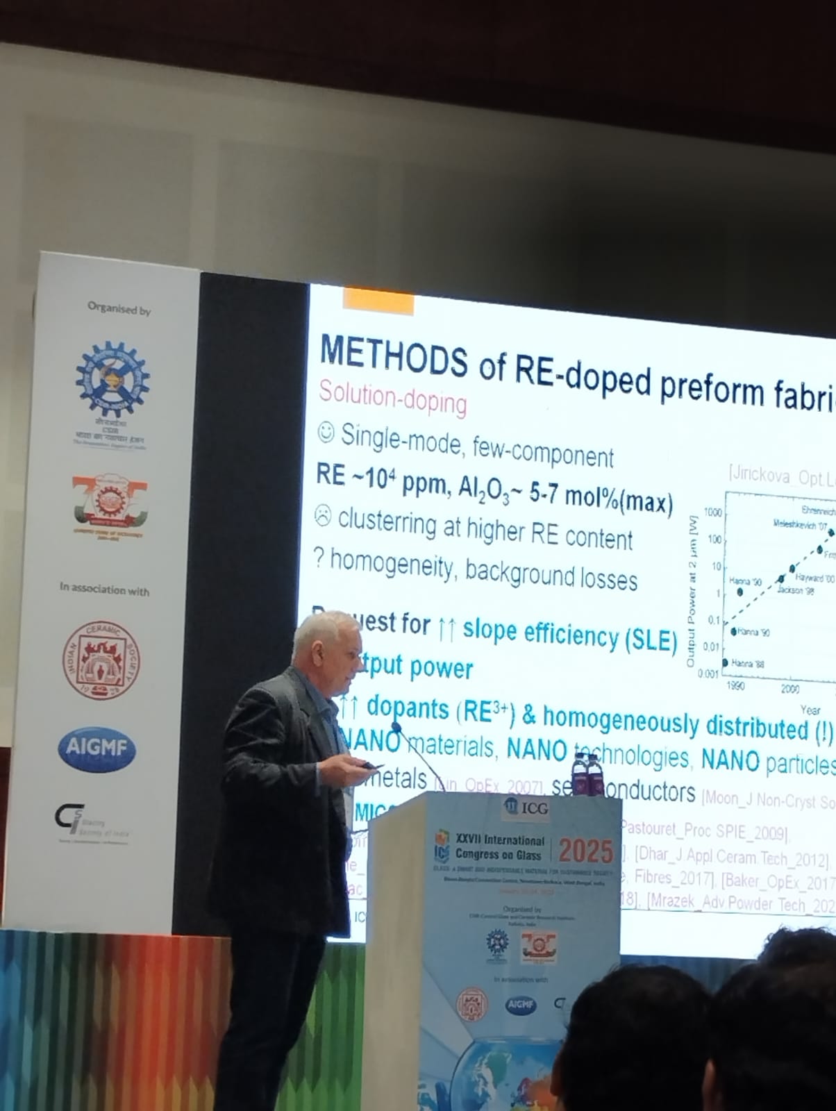 Technologists Michal Kamrádek and Ivan Kašík from the Fiber Lasers and Nonlinear Optics research team attended the top event of the world glass society – the ICG (International Commission on Glass) congress from 20 – 24 January 2025 in Kolkata, India. The ICG congresses are held every 3 years; Prague hosted such an event to great acclaim in 1977 and 2013. This year’s congress focused on the theme Glass as an elegant and essential material for a sustainable society. This was reflected in the selection of 12 plenary lectures, 94 invited lectures and 110 other lectures divided into 6 sessions – for a total of 580 participants from 23 countries.