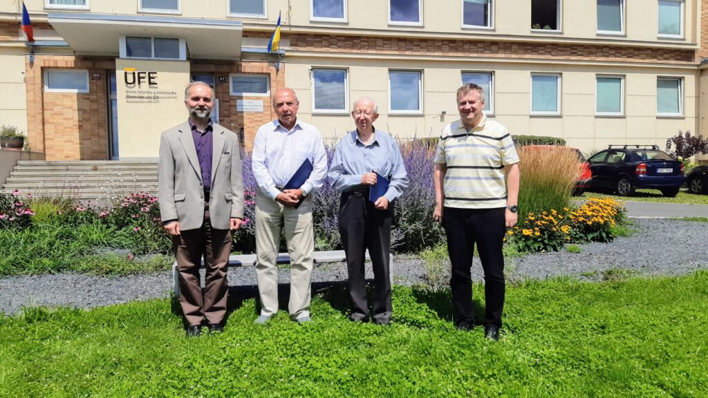 Vědci Jiří Čtyroký a Vlastimil Matějec převzali z rukou ředitele ÚFE Pavla Peterky jmenovací dekrety statutu emeritního vědeckého pracovníka Akademie věd ČR za celoživotní úspěšnou práci a zásluhy o rozvoj pracoviště a vědního oboru. Ředitel ÚFE poděkoval oceněným za jejich významný přínos v rozvoji vlnovodné fotoniky a optických vláken a oběma popřál další pracovní úspěchy v ÚFE.