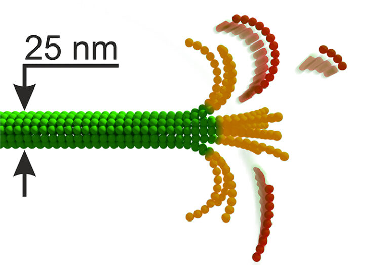 Mikrotubuly jsou mimořádně proměnlivé buněčné struktury, které samovolně, opakovaně a velmi rychle rostou a zkracují se, a tím plní svou funkci v životadárných procesech, jako je dělení nebo pohyb buněk. Na konečcích rozpadajících se mikrotubulů byly ve statických obrázcích z elektronového mikroskopu již před desítkami let objeveny zakřivené, pouhé nanometry velké struktury. Protože však nebylo možné přímo sledovat vznik těchto bílkovinových formací v reálném čase, hlubší souvislosti mechanismů řídících rozpad mikrotubulů se změnami a dynamikou jednotlivých bílkovin setrvávaly dosud v rovině hypotéz a modelů.