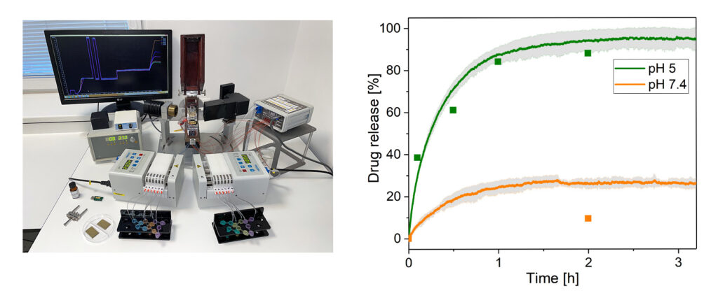 Tým Optické biosenzory vyvinul novou metodu, ve které byl poprvé použit „bezznačkový“ biosensor s povrchovými plasmony pro sledování indukovaného uvolňování léčiva z polymerních nanonosičů. Oproti standardně používaným přístupům (HPLC a kapilární elektroforéza), metoda má řadu výhod jako je kontinuální sledování uvolňovaného léčiva ve velkém časovém rozmezí (sekundy – hodiny) a bez nutnosti značení léčiva. Dále se jedná o univerzální metodu, která jako jediná byla schopná sledovat všechna léčiva.