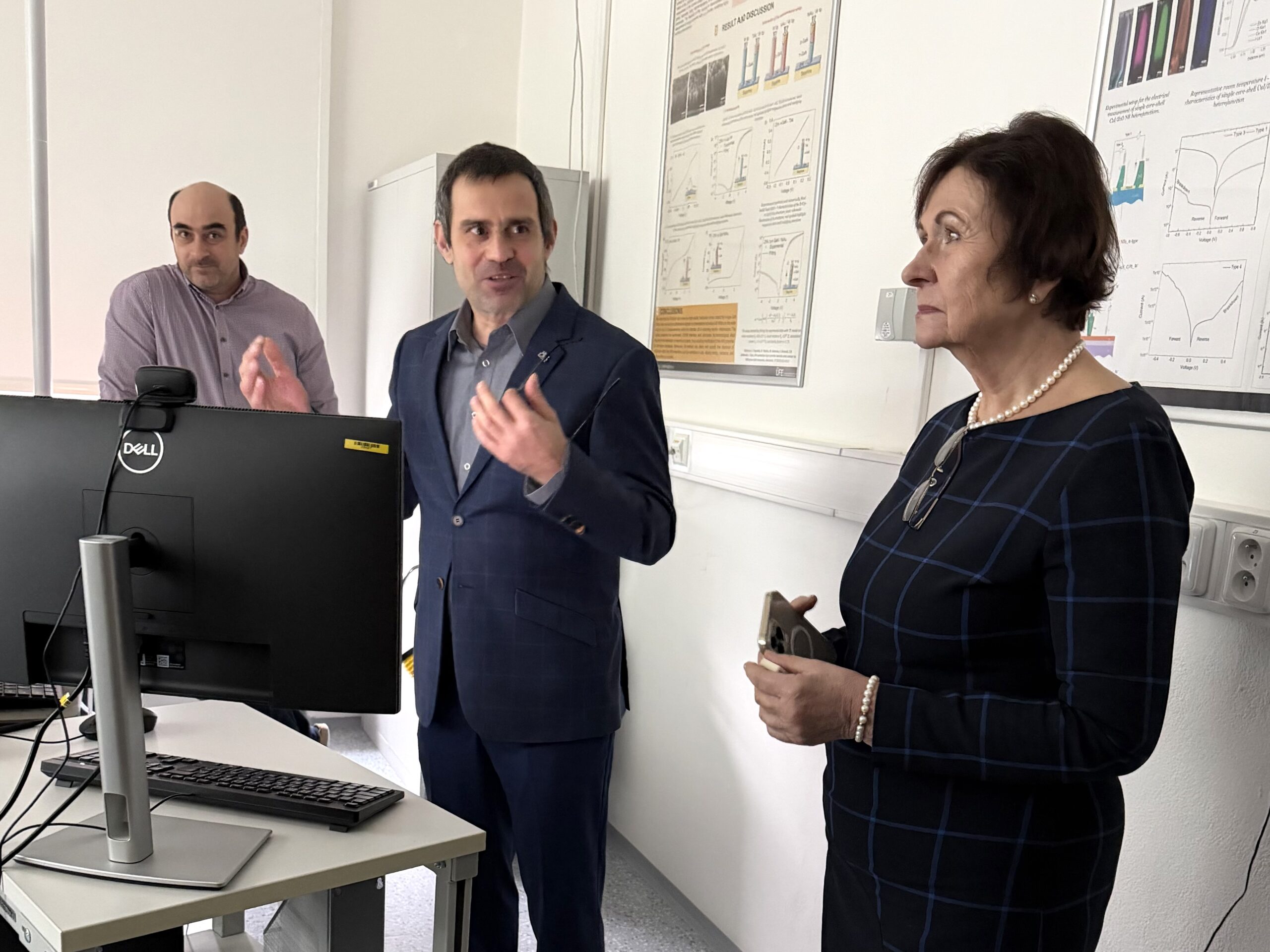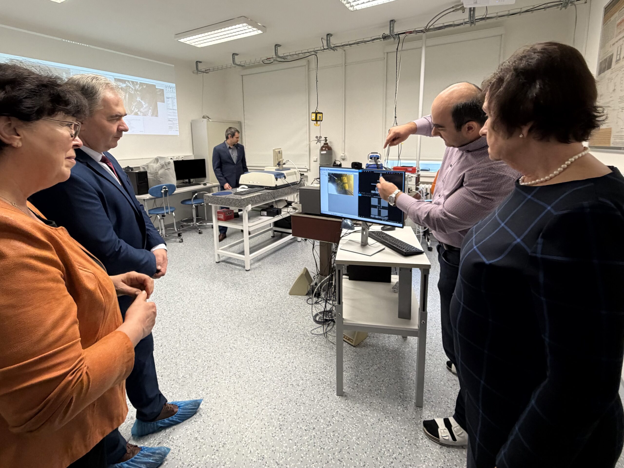 Součástí programu byla prohlídka vybraných laboratoří ÚFE v budově v Kobylisích, během níž se předseda AV ČR seznámil s konkrétními výzkumnými tématy, dlouhodobými projekty i jejich praktickými dopady.