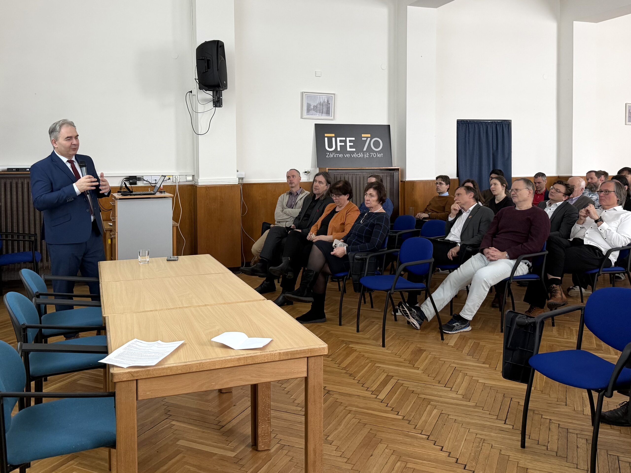 Závěr návštěvy patřil setkání se zaměstnanci ÚFE v ústavním sále, které mělo velmi pozitivní ohlas. Prof. Pánek zde představil nový program excelence „Akademie budoucnosti“, zaměřený mimo jiné na podporu mezinárodní mobility špičkových vědců a prestižních mezinárodních projektů. Ve svém vystoupení se věnoval také rozpočtu Akademie věd ČR a zdůraznil význam jednotné komunikace pracovišť pod hlavičkou Akademie věd ČR.