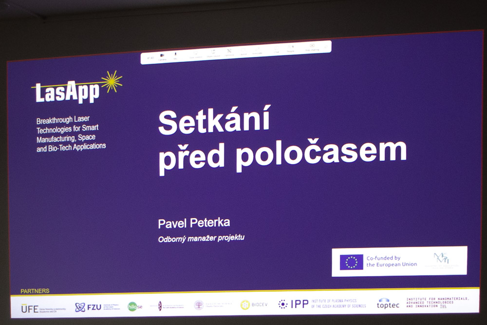 Ve čtvrtek 5. února 2026 se v sále ÚFE v Praze–Kobylisích uskutečnilo setkání účastníků projektu LasApp. Program zahájil Pavel Peterka, který představil cíle setkání a shrnul aktuální stav projektu i dosažené pokroky.