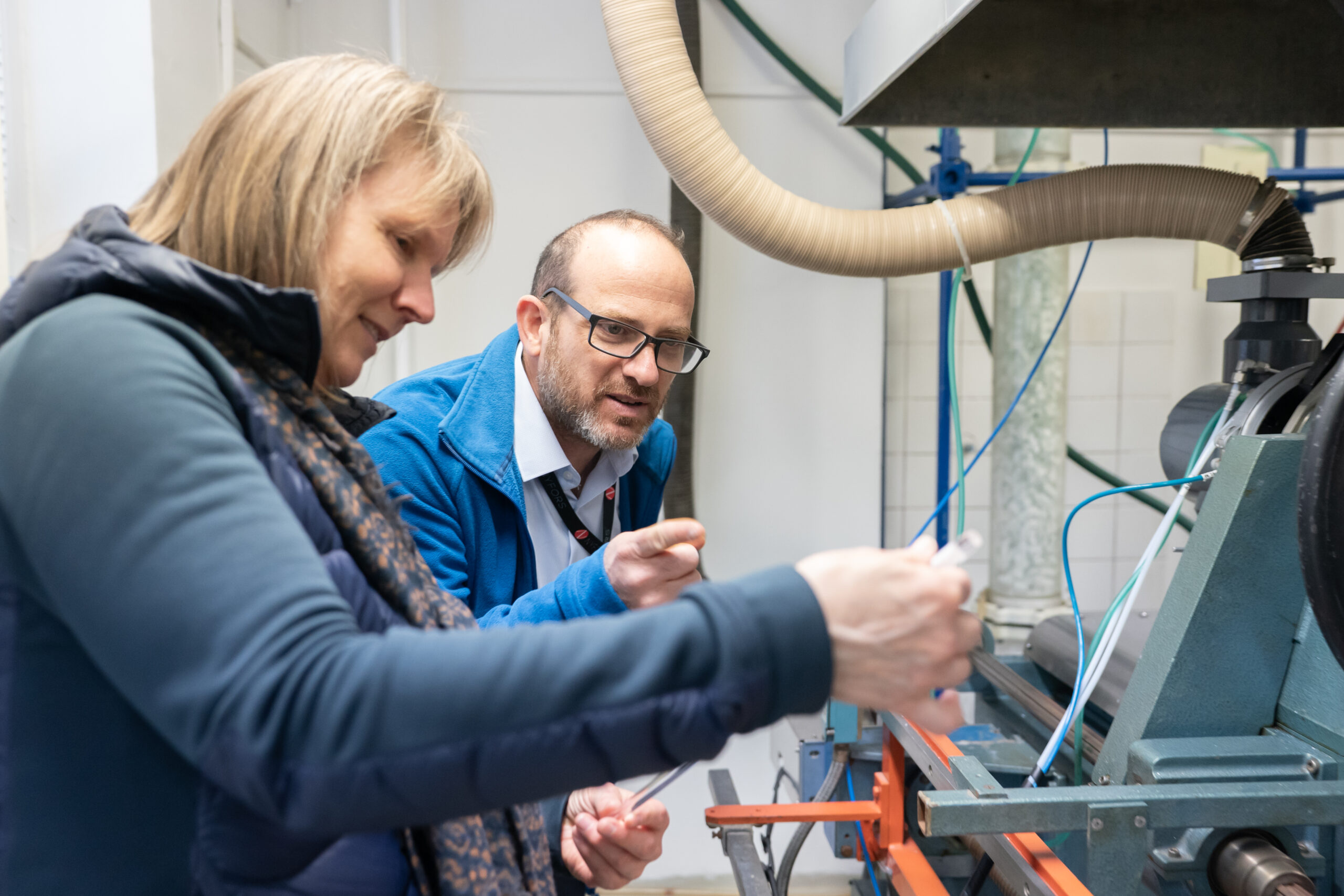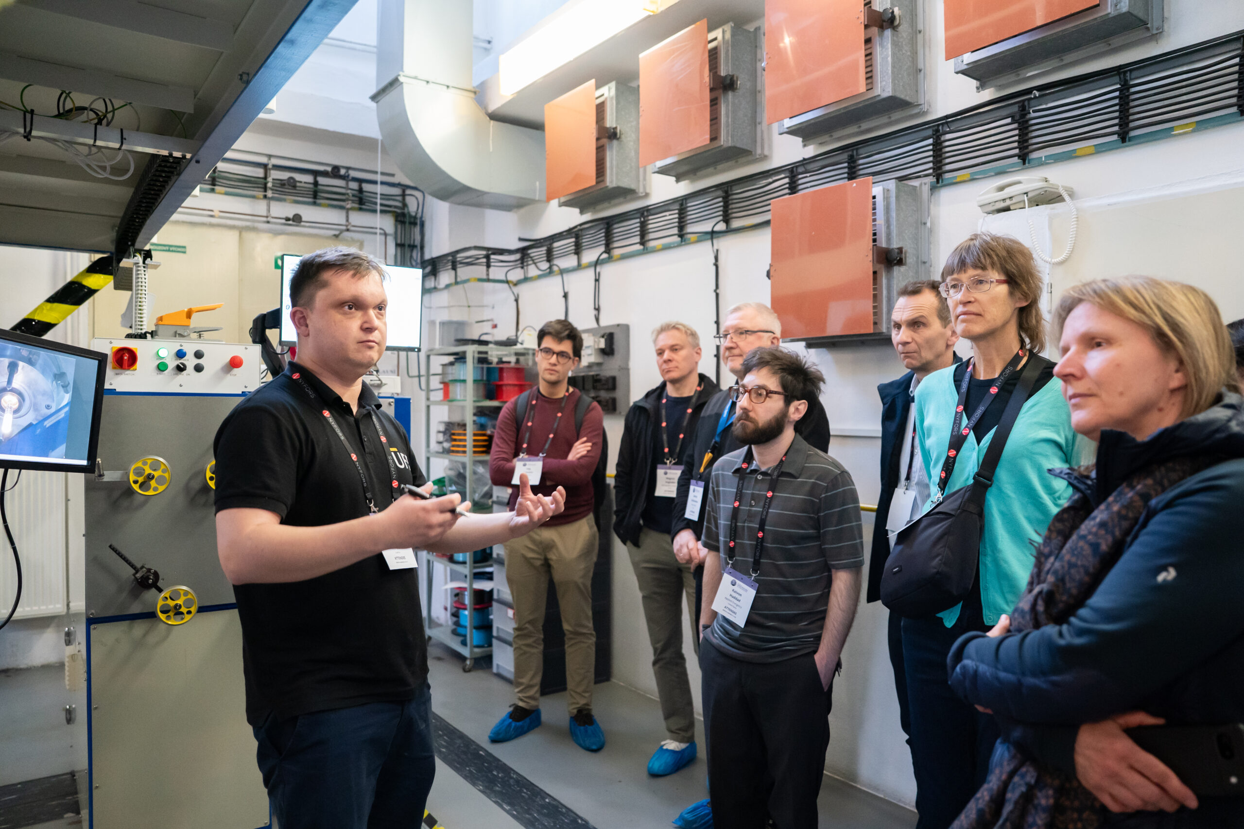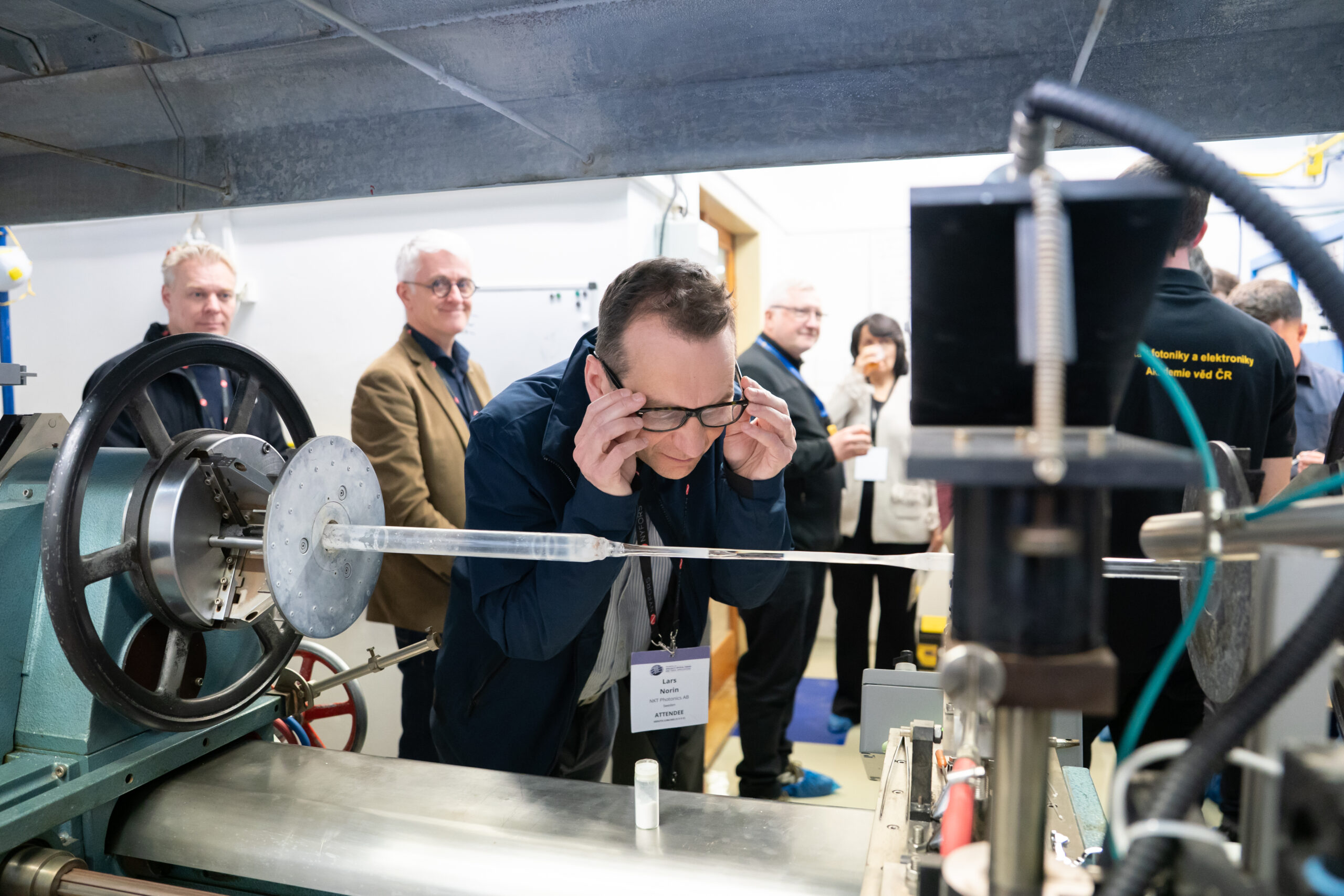 Účastníci WSOF měli také příležitost ve čtvrtek 10. dubna navštívit laboratoře pro technologii výroby optických vláken na odloučeném pracovišti ÚFE v Praze 6-Lysolajích. V rámci exkurze jsme přibližně 35 návštěvníkům představili naši výzkumnou infrastrukturu, počínaje soustruhem pro výrobu skleněných tyček (preforem) metodou MCVD, přes tažící věž, ve které se preforma taví při 2000 °C, až po stanoviště, kde se vytažené optické vlákno obaluje speciálním polymerem a navíjí na cívku.