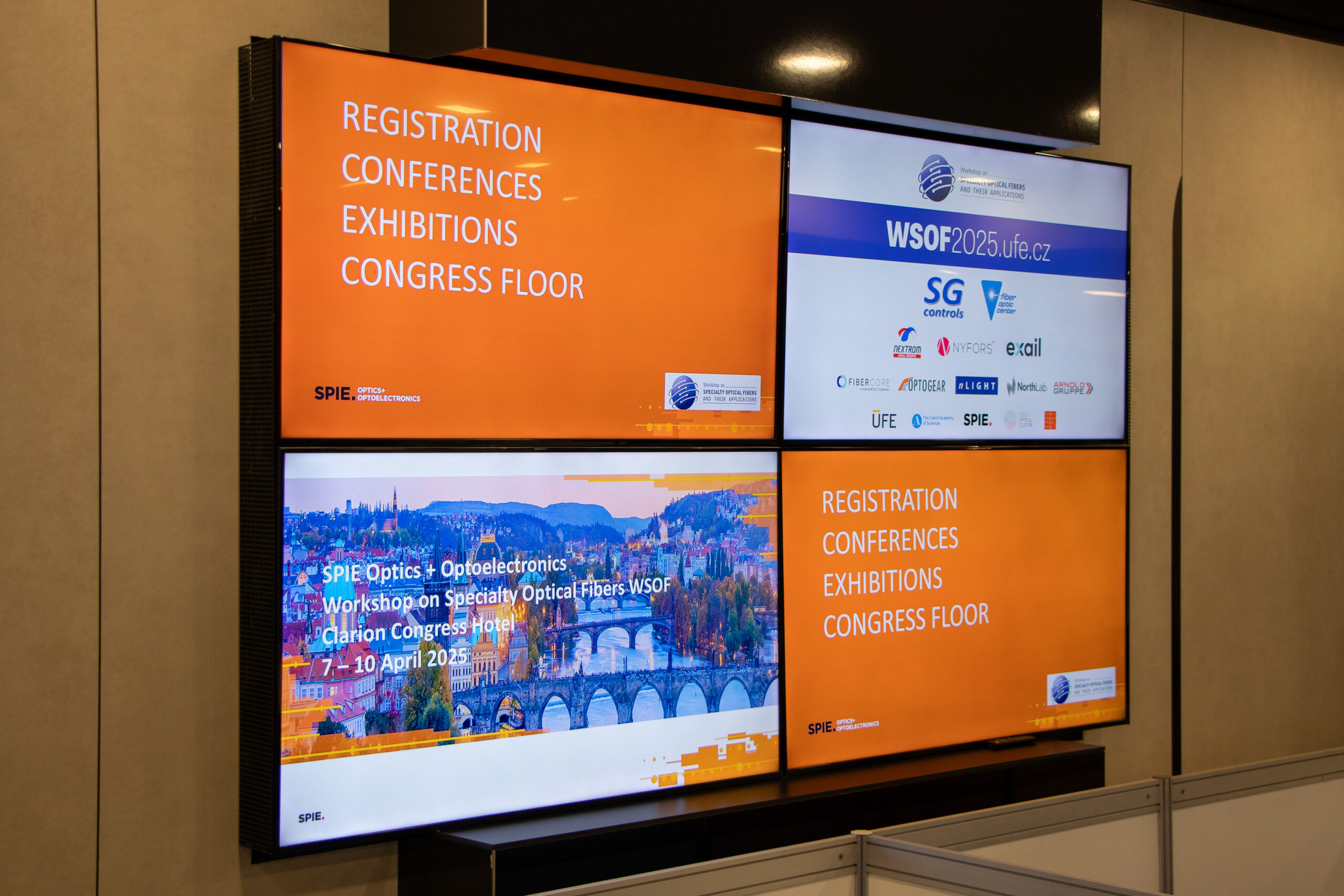 V pořadí 8. technický workshop a výstavu zaměřenou na pokrok a inovace v oblasti speciálních optických vláken a jejich aplikací, Workshop on Specialty Optical Fibers and Their Applications – WSOF, pořádalo ÚFE v Clarion Congress Hotelu v Praze-Vysočanech. Na WSOF se zaregistrovalo téměř 200 účastníků, kteří mohli vidět 106 prezentací, z toho 4 plenární a 15 zvaných přednášek, 43 přednášek a 44 posterů. Úspěch měla rovněž průmyslová výstava, kde vystavovalo 25 firem, výjimečně reprezentativní bylo zastoupení firem dodávajících technologické celky pro přípravu optických vláken.