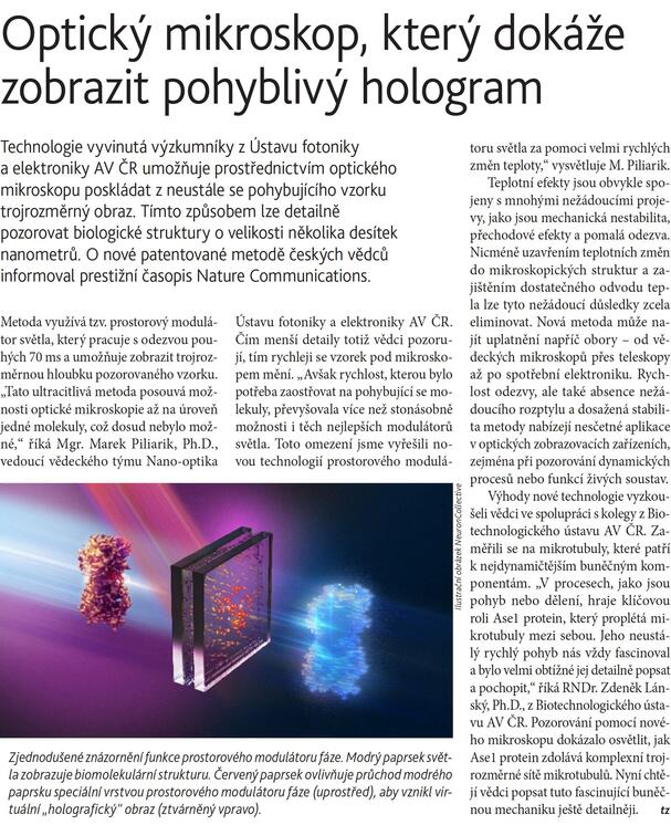 Optický mikroskop, který dokáže zobrazit pohyblivý hologram
