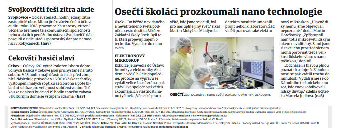 40 let výzkumu optických vláken v Česku zaznělo i na sympoziu SPIE Optics+Optoelectronics