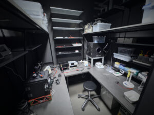 Experimentální systémy a vyhrazená temná místnost pro měření ultranízké intenzity světla a fotonické experimenty. Vybavení: 3x světlotěsné komory s regulací