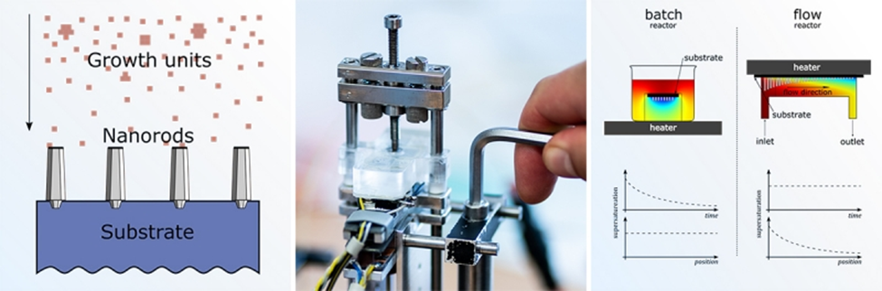 Syntéza stavebních bloků v nanorozměrech s kontrolovatelnými rozměry, morfologií a materiály je pro nanovědu a nanotechnologii klíčová. Zaměřujeme se na přípravu polovodičových nanodrátků a nanodrátků z roztoků s cílem přizpůsobit jejich fyzikální, chemické a elektronické vlastnosti pro konkrétní aplikace. Toho se konvenčně dosahuje pomocí zdlouhavého empirického přístupu vaření a hledání. Tento přístup výrazně překračujeme tím, že provádíme modelování chemických a fyzikálních jevů probíhajících v růstových roztocích, identifikujeme mechanismy nukleace a růstu a vyvíjíme nové metody růstu a techniky patternování.