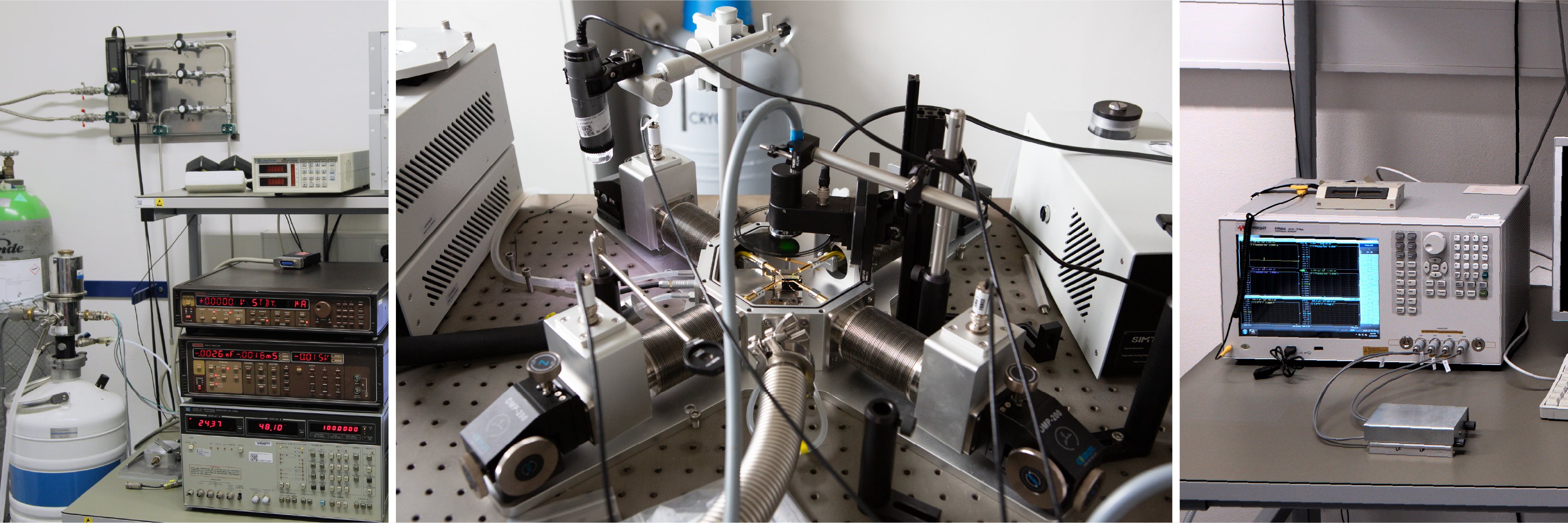 - Parametrový analyzátor 4200A-SCS-PKA (Keithley: 3× I-V měřící jednotka; rozlišení měření 100 fA; rozlišení 10 aA s předzesilovačem)
