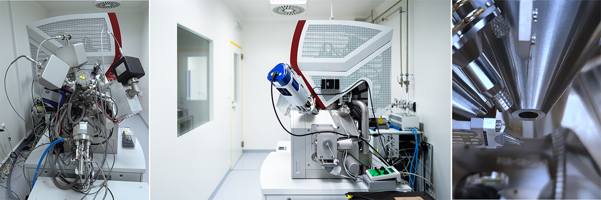 Multifunkční nanotechnologický přístroj Tescan Lyra 3GM kombinuje techniky rastrovací elektronové a iontové mikroskopie s depozicí a leptáním vyvolaným elektronovým a iontovým svazkem, elektronovou a iontovou litografií, energiově disperzní rentgenovou spektroskopií a hmotnostní spektrometrií time-of-flight. Tento přístroj nám umožňuje pozorovat, obrábět a manipulovat s nanostrukturami, připravovat kontakty na ně, vyrábět lamely pro transmisní elektronovou mikroskopii a provádět jejich elektrické a chemické analýzy in-situ.